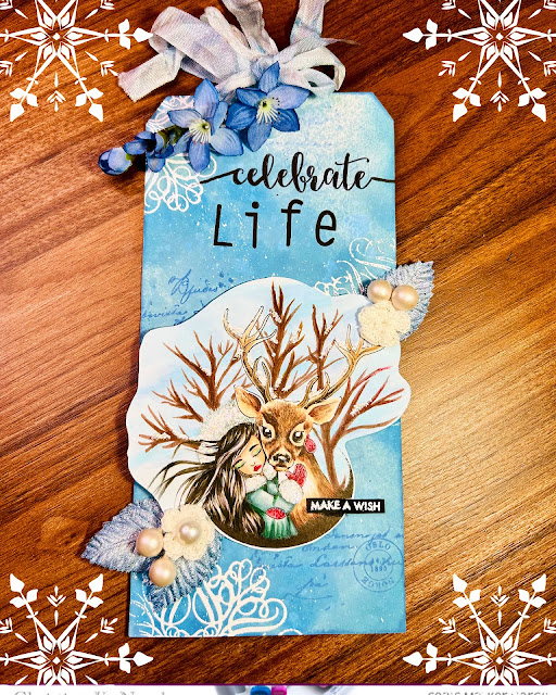 Jeg har laget en mixed media tag for å markere starten på ett nytt år og bruke små øyeblikk for å sette pris på ting som betyr noe for en i hverdagen. Motivet jeg har brukt er Aurora Raindeer fra Theeastewind.